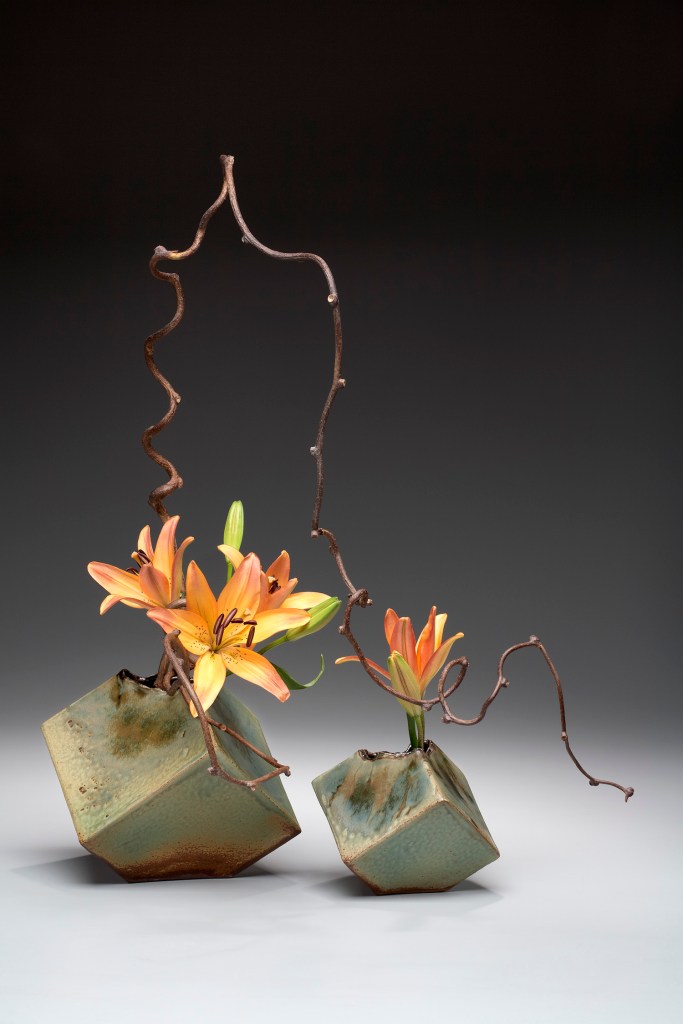 I have always loved Asian art. And along with the art, I love Ikebana (Japanese flower arranging.) My studies in the Sogetsu School of Ikebana piqued a strong interest in creating ceramic Ikebana containers. My pottery often reflects the influence of Ikebana’s strong lines and aesthetics.